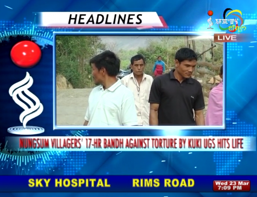 Imphal, 24 March 2016 : The 17-hour bandh called on Sagolmang to Imphal road by the JAC against the torture of Nungsum Village by the Kuki underground cadres has badly affected normal life in the area. The bandh which began this morning from 6am was called to protest the constant torture of the villagers by the cadres of KNA and KLA. Supporters of the bandh blocked the road by placing electric poles, logs and bamboos in the middle of the road. The JAC alleged that the Govt. has failed to response to the JAC’s appeal to look into the matter. They also threatened to close down the Imphal Saikul road if the govt and the Kuki underground outfits fail to settle the issue.